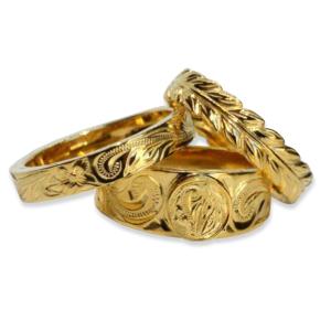 ハワイアンジュエリー リング 指輪 マイレリング K24 純金 コーティング 6号〜22号 「神が宿る神聖な葉」 「絆」 Surgical Stainless316L ksf037