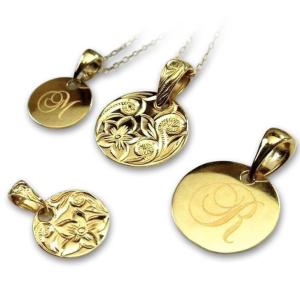 ハワイアンジュエリー ネックレス 刻印無料 ラウンド イニシャル ペンダント 選べる5種類の チェーン K10 K18 ゴールド 誕生石 メンズ レディース ord013