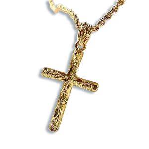 ハワイアンジュエリー ネックレス バー ペンダント スクロール プルメリア K24 純金 仕上げ Surgical Stainless316L E-BOS ksfn007