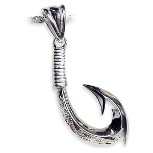 ハワイアンジュエリー ブルーオパール フィッシュフック ネックレス 「Ropeチェーン付き」 釣り針 ペンダント メンズ レディース Silver925 sfi025
