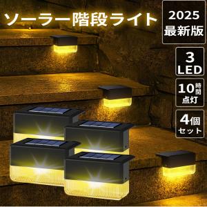 ソーラーライト 階段ライト 4個セット 高輝度LED 防水ライト ソーラー充電 大容量バッテリー 屋外照明 フェンスライト ガーデンライト 夜間自動点灯 A202