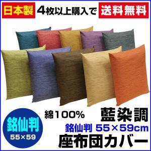 座布団カバー 55×59cm 銘仙判 綿100% 藍染め調 ネコポス対応