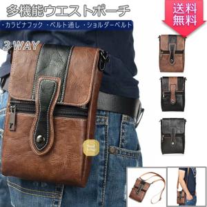 ウエストポーチ レザー調 ベルトホルダー 大容量タイプ ベルトポーチ 3WAY スマホポーチ 縦型 肩掛け ヒップバッグ iphone xperia Android 男性用 高級感