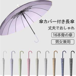 傘カバー付き 長傘 レディース メンズ 傘 16本骨 耐風 丈夫 無地 シンプル ファッション ジャンプ傘 おしゃれ かさ カサ 車載 持ち運び 雨具
