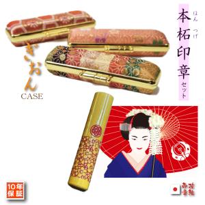 印鑑 実印 女性 はんこ 銀行印 ●和柄文様柘植とぎおんケース印鑑セット 祇園印鑑ケース付セット かわいい 和柄 花柄 10.5・12・13.5・15 ミリ×60mm