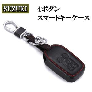 スズキ マツダ キーカバー キーケース 革 レザー 4ボタン SUZUKI スペーシア ソリオ バンディット フレアワゴン スマートキー ケース