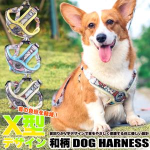 犬 猫 和柄 ハーネス X型 体に優しい V字仕様 脱げにくい 軽量 涼しい 快適 ウェアハーネス 光反射 ペット 服 胴輪