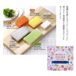 「ありがとうございます」キッチンスポンジ5種セット ※60個以上でご注文願います/販促品 景品 粗品 ノベルティ