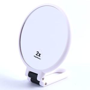 両面鏡 ( 手鏡 拡大鏡 ) 『拡大と等倍の両面ミラー!』折りたたみ可能 卓上ミラーとしても使用可能 (ホワイト 拡大2倍)