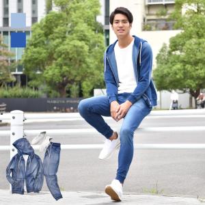 セットアップ メンズ パーカー スウェット ジョガーパンツ サーフ ビター オラオラ お兄系 春秋冬 青 紺 ブルー インディゴ M L XL XXL