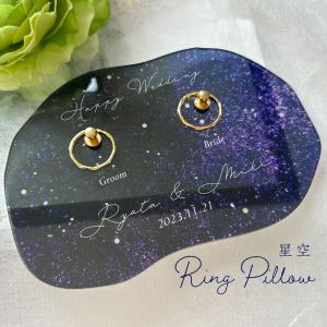 リングピロー 星空 アクリル製 お名前 日付入ります スタンド付き