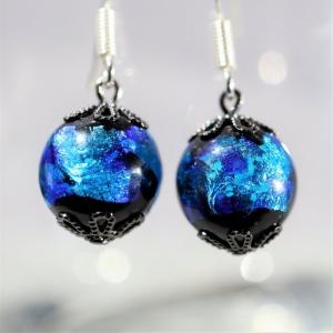 ほたる玉 ピアス とんぼ玉 ホタルガラス 光る 沖縄 お土産 琉球 工芸 シルバー925 ブルー