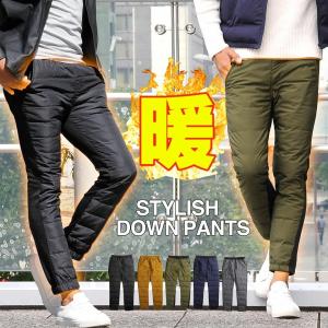 【メール便送料無料】ダウンパンツ メンズ ジョガーパンツ 裏起毛 暖かい 防寒 冬 細身 スリム 切替デザイン S M L XL おしゃれ きれいめ カジュアル アウトドア