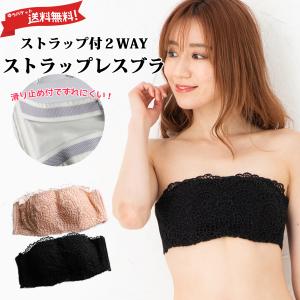 【メール便発送商品】送料無料 総レースカシュクールの2WAYストラップレスブラ ドレスインナー ずれないストラップレス ブラジャー
