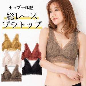 【メール便発送商品】送料無料 カップ一体型総レースブラトップ|ナイトブラ ブラトップ カップ付ブラ ノンワーヤーブラ