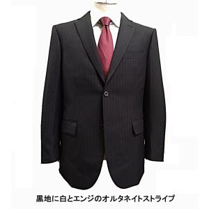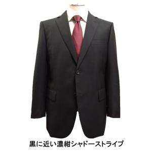 メンズビジネススーツ ウール100% 黒ストライプ 秋冬 サイズ AB4〜AB7 BB4〜BB7 やや細身 2つボタン クラシック ノータック スーツ 15573 15581