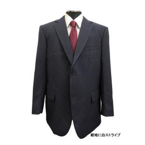 B級品 大きいサイズE6 オールシーズン ポリエステル素材 アジャスター付2ボタンウォッシャブルスーツ 紺地に白ストライプE体13529 E6サイズ交換返品不可