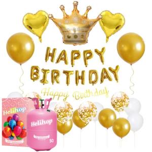 ヘリウムガス 誕生日 バルーン ゴールド バルーン セット Helihop(ヘリホップ) 400L 結婚式 結婚記念日 入学式 卒団式 還暦祝い 七五三 成人式