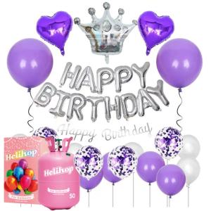 ヘリウムガス 誕生日 バルーン パープル バルーン セット Helihop(ヘリホップ) 400L 結婚式 結婚記念日 入学式 卒団式 還暦祝い 七五三 成人式