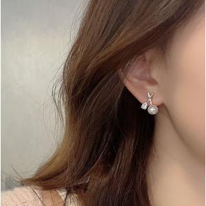 ピアス アレルギー対応 レディース キュービックジルコニア リボン 揺れる大ぶり 結婚式 普段使い 可愛い おしゃれ