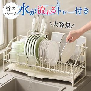 爆買 水切りラック 水切りかご スリム キッチンラック 大容量 包丁立て 箸置き まな板立て 水を流すトレー付き 省スペース 食器 おしゃれ 組み立て簡単