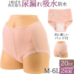 尿漏れパンツ 女性用 失禁パンツ 吸水ショーツ 尿もれ レディース 生理用 綿 レース おしゃれ 深ばき 20cc セット 2枚[M:2/3]大きいサイズ 6L 5L 4L 3L LL L M
