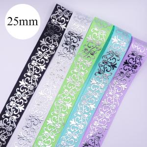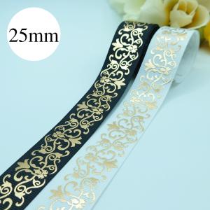 25mm幅 ゴールド箔押し リーフ柄 トライバル柄 グログランリボン 2m