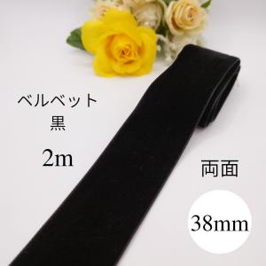 38mm幅 両面 ベルベットリボン ベロア 別珍 ハンドメイド 手芸 ヘアアレンジ ヘアアクセサリー 黒 ブラック 2m