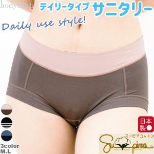 スーピマコットン デイリーサニタリーショーツ 昼用 ショート丈 羽根つき対応 日本製 綿 ショート丈 生理用ショーツ 消臭 1分丈 デイリー 単品