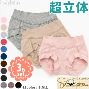 スーピマコットン 超立体ショーツ同色3枚セット ショート丈 やや浅ばき ヒップずり上がらないパンツ 女性用パンツ 肌着 冷えとりパンツ 下着
