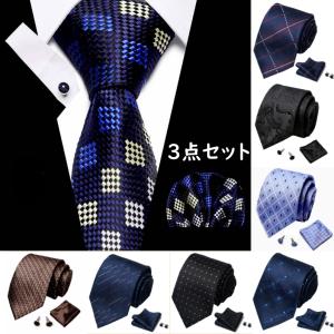 ネクタイ カフス ポケットチーフ ネクタイ3点セット 結婚式 二次会 パーティ オシャレ ビジネス カジュアル