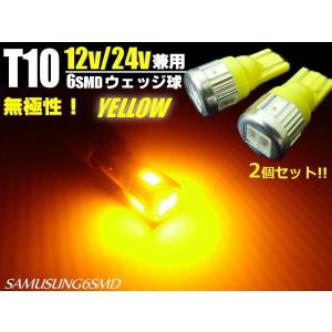 12V・24V兼用 LED T10ウェッジ 6連SMD 赤色レッド 2個セット
