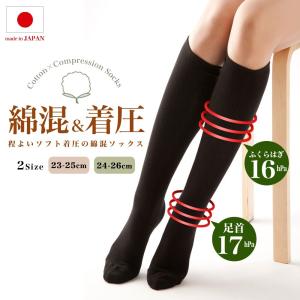 着圧 靴下 ソックス 3足セット レディース ソフト着圧 着圧弱め ハイソックス Lサイズ登場 日本製 ほど良い着圧 靴下 綿混 むくみ 145
