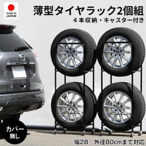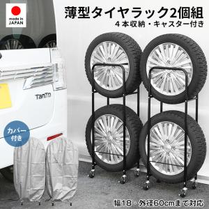 軽自動車用 薄型タイヤラック2個組 タイヤ幅18cm用 専用カバー付き | 日本製 タイヤ収納 縦置き 外径60cmまで対応 冬タイヤ 0823 爆買