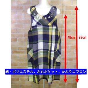エプロン かぶり 花の刺繍 格子柄 ネイビー&グリーン 2313-18 プレゼント ギフト