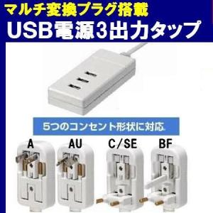 マルチ変換プラグ(A、C、O、BF、SE)搭載 『海外旅行用USB充電テーブルタップ 3USB電源ポート』
