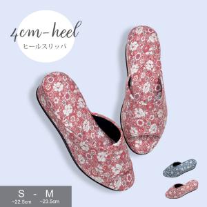 日本製 ヒールスリッパ 小花柄デザイン 花柄 4cmヒール スリッパ 小さいサイズ Sサイズあり