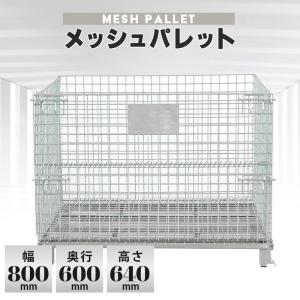 メッシュパレット メッシュボックス 網パレ 網かご 金網 800x600x640mm 折りたたみ 前扉半開式 耐荷重300kg メッキ仕上げ カゴパレット 運輸 倉庫