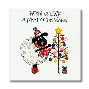 英国製 クリスマス グリーティングカード 羊 シープ・ツリー 刺繍柄 メール便OK