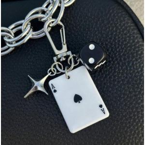 【訳あり】【キーホルダー】黒サイコロ+トランプセット ハートエース フック付き