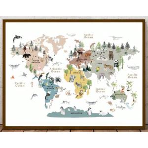 【ファブリックポスター】世界の動物地図 キャンパスアート 地理 学習ポスター 送料無料
