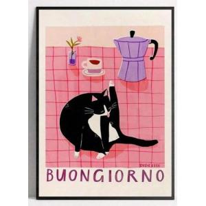 【ファブリックポスター】ボンジョールノ黒猫 布ポスター ファブリックパネル 絵画 送料無料