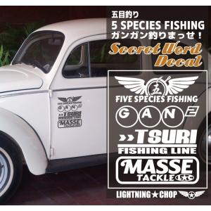 【五目釣り ガンガン釣りまっせ!】五目釣り カッティングステッカー フィッシング シークレットワードデカール 横幅約18cm