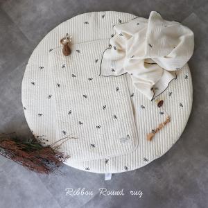 new ribbon RUG 刺繍 beige&black (両面刺繍) ラグマット ヌビマット リボン ホットカーペット・床暖房対応可能