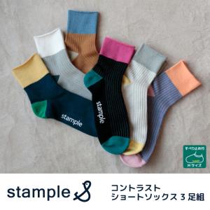 スタンプル コントラストショートソックス 3足組 72979 靴下 子供 キッズ おしゃれ 男の子 女の子 滑り止め