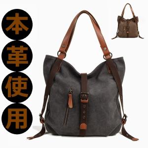 トートバッグ ショルダーバッグ リュック メンズ レディース 帆布 a4 ヌメ革 本革 帆布 大容量 通勤 通学 3way