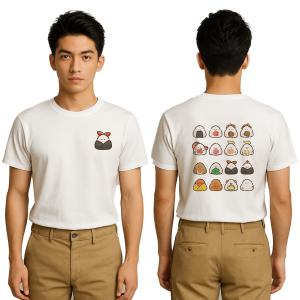 おにぎりマニア必携 かわいいおにぎり T シャツ登場 前小柄・後ろ 16 種おにぎりプリント T シャツ、カジュアルスタイルで癒しのファッション S00001