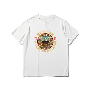 日本風景 T シャツ 富士山デザイン 日本文化 アニメ調 カジュアル 白 黒 T シャツ Z00015