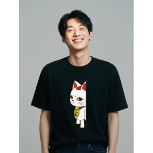「招き猫の “ラッキーチャンス”!」 メンズ半袖 男女兼用 100%コット J101010