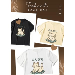 半袖Tシャツ 男女兼用 猫派 100%綿 のんびり猫イラスト 三色展開 Z00033